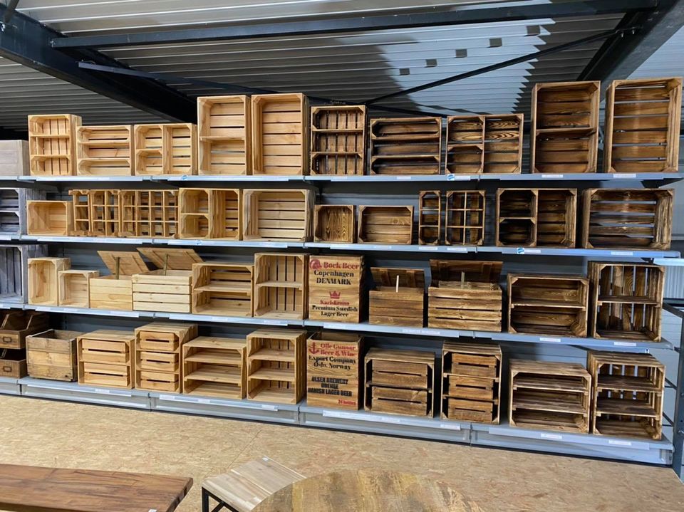 C’est en 2015 que tout commence par la vente d’anciennes caisses à pommes aux particuliers. Très vite contacté par un chaine de magasin de TROC et par une célèbre jardinerie, désireux de vendre eux aussi des caisses anciennes, j’ai décidé de devenir grossiste installé à l’époque à Visé près de Liège. C’est dehors que les stock sont conservés.